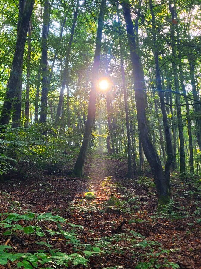 Gut 5 km wandern wir über die ehemalige Keltensiedlung und der Weg wirkt manchmal ein wenig wie ein Gratweg in den Alpen. Nur halt im Wald. Dieses fast schon meditative Teilstück führt zum Ende hin bergab zur Donau und wir gelangen an die Abfahrtsstelle der Zille. Mit der Zille erfolgt die Überfahrt über die Donau zum Kloster Weltenburg.