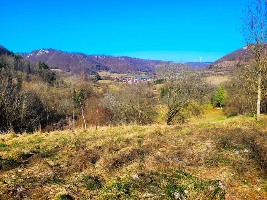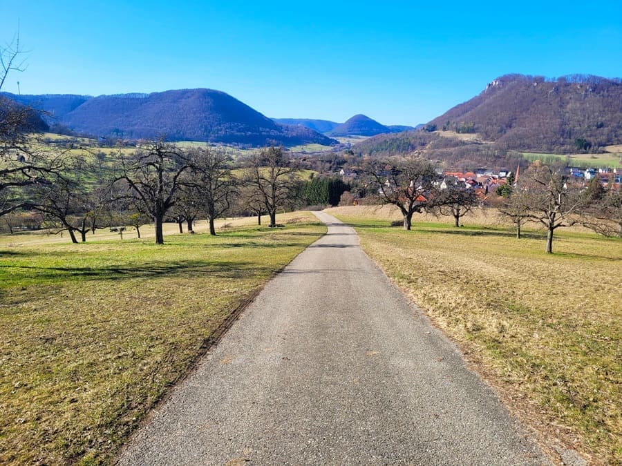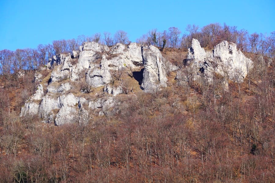 Der Blick fällt dabei auf die imposanten Felswände, für die die Schwäbische Alb bekannt ist. Vor allem die markanten Hausener Felsen fallen ins Auge.