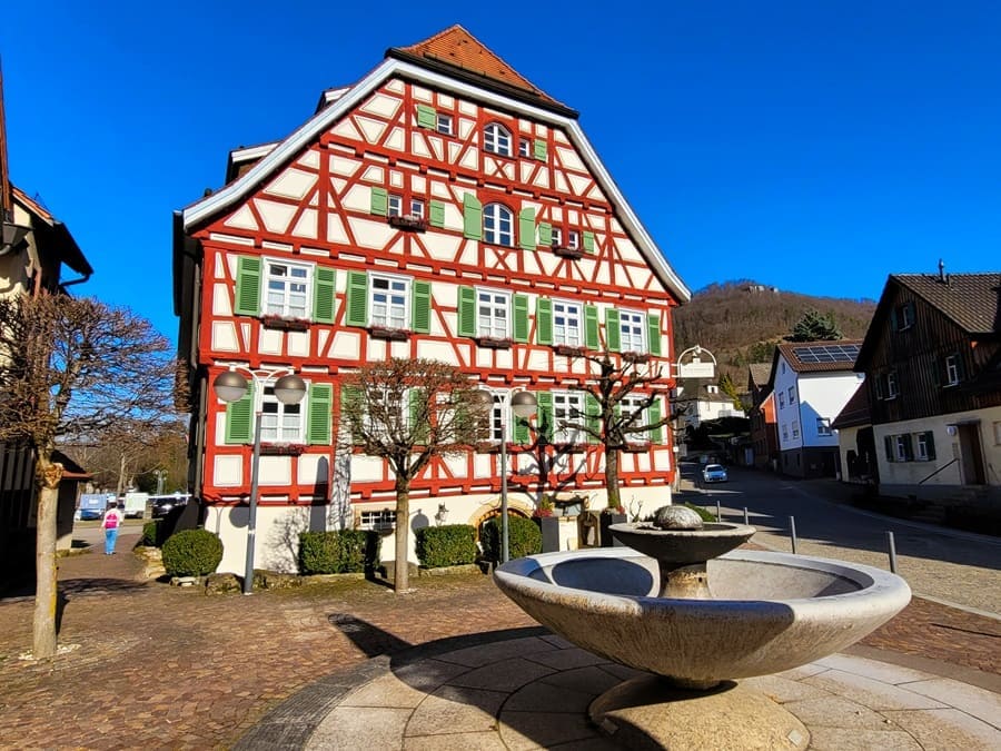 Mittlerweile sind wir auch schon wieder die wenigen Höhenmeter, die wir vor ca. 1,5 Stunden hinauf gewandert sind, auch schon wieder bergab gewandert und erreichen den Ortskern von Bad Überkingen.