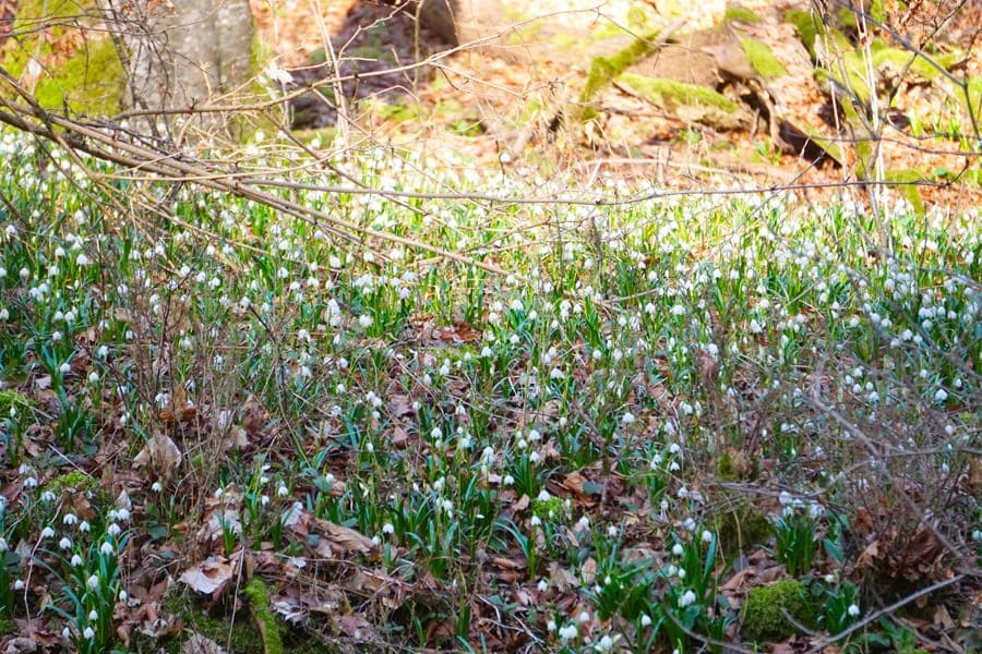 Überall entlang des Wanderwegs können die Märzenbecher bestaunt werden. An Wochenenden und Feiertagen kann es auf dem Wald- und Wasserweg schon einmal voll werden. Erst recht, wenn sich herumgesprochen hat, dass die Autaler Wasserfälle Wasser führen. Denn das ist durchaus nicht immer der Fall. Und spätestens über Social Media wird dann ausführlich über das Schauspiel berichtet. Ein toller Ort, um Fotos für unsere Social Media-Kanäle zu ergattern (Folgt uns doch auch: Instagram, Facebook, Pinterest, Newsletter).
