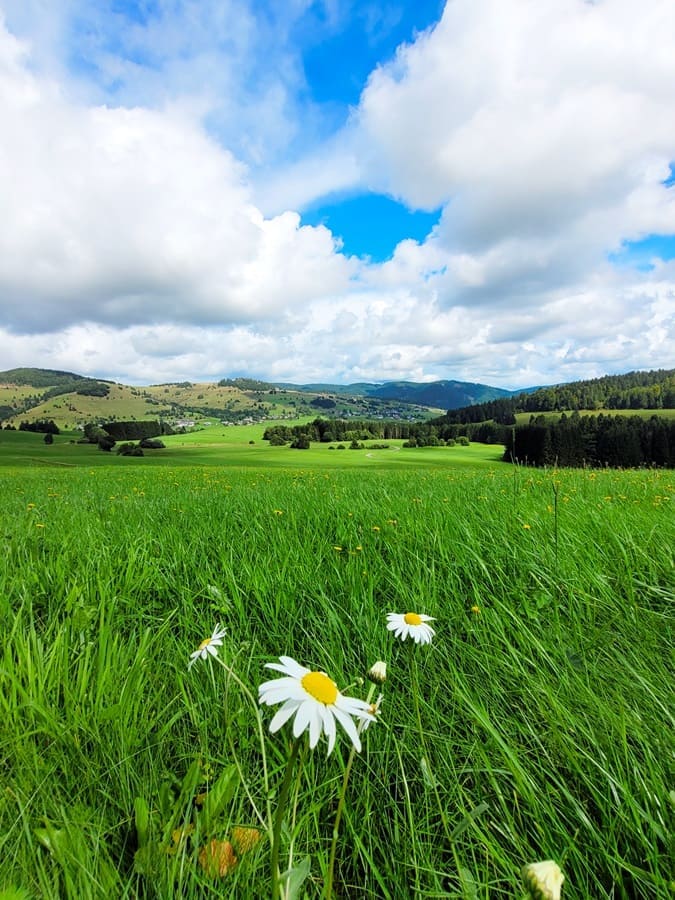 Der Weg im Höhenluftkurort Bernau auf knapp 900 Metern Höhe führt auf den fast 1.300 m hohen Blößling-Gipfel. Hier warten das Gipfelkreuz, eine Schutzhütte, eine Himmelsliege und natürlich die fantastischen Aussichten über das Bernauer Hochtal auf uns. Die Gipfel von Herzogenhorn, Feldberg und dem Belchen sind ebenso zu sehen wie manchmal sogar die Alpenkette.