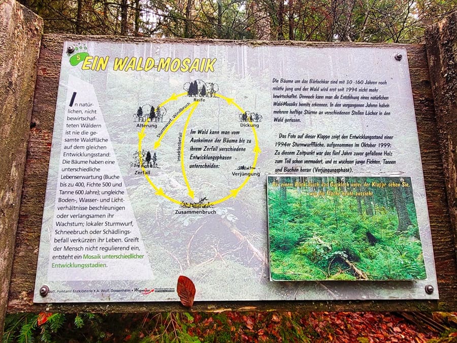 Auf dem Bärlochkar Rundweg kann beobachtet werden, wie der Urwald von morgen entsteht. Im Jahr 1997 wurde das Bärlochkar als Bannwald ausgewiesen. Ein sogenanntes „Totalreservat“, in welchem die Natur sich selbst überlassen wird. Totholz, welches in anderen Wäldern vielleicht beseitigt würde, bleibt hier einfach im Wald stehen oder liegen. Ein solcher Bannwald dient als Schutz- und Rückzugsgebiet für seltene Tier-, Pflanzen- und auch Pilzarten.