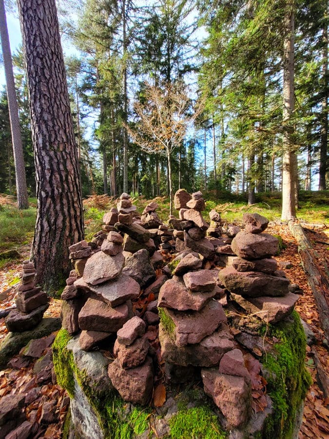 Wir folgen der Route nun weiter in Richtung Erdbeerplatte und Heidelbeerschaukel durch ein Waldstück.