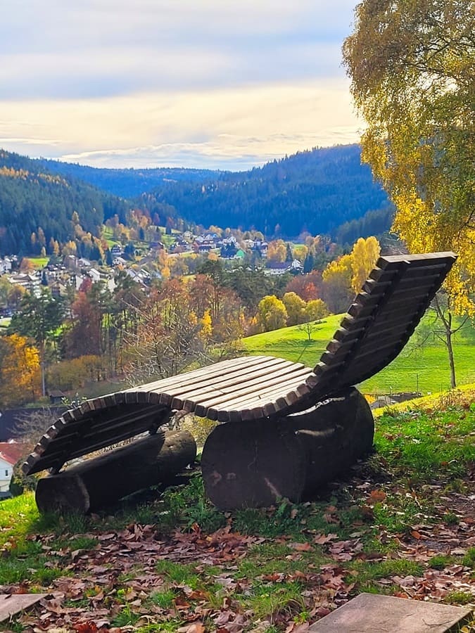 So langsam neigt sich die Wanderung auf dem Heidelbeerweg Enzklösterle ihrem Ende entgegen. Noch gut 2,5 km sind zu wandern und eine letzte Himmelsliege mit schönen Aussichten erwartet uns kurz vor dem Ziel, dem Adventure Golfpark.