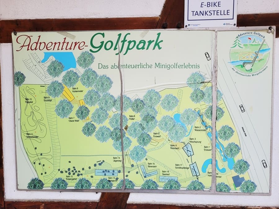 Beim Adventure-Golfpark endet dann dieser aussichts- und abwechslungsreiche Premiumwanderweg in Enzklösterle. Auf über 3.000 qm warten 18 Minigolf-Bahnen darauf, bespielt zu werden. Praktisch: Ein dazugehöriger kleiner Biergarten versorgt auch Nicht-Golfer mit Getränken und kleinen Snacks. Besonders lecker geht es in der Heidelbeerzeit zu: Dann werden u.a. Heidelbeerpfannkuchen, Heidelbeereis, Heidelbeerschorle und sogar Heidelbeerbier angeboten!