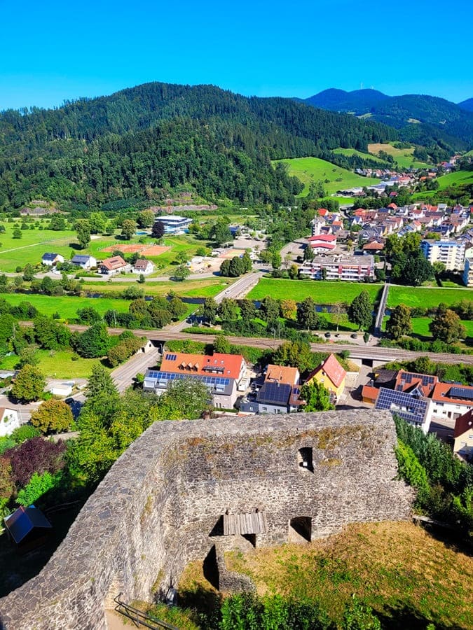 Die Burg Husen thront oberhalb der Stadt und nach dem Aufstieg auf den Turm erhaltet ihr eine erste tolle Aussicht über Hausach und auf das Tal der Kinzig. Die Geschichte der mittelalterlichen Höhenburg kann bis ins Jahr 1220 zurückverfolgt werden.