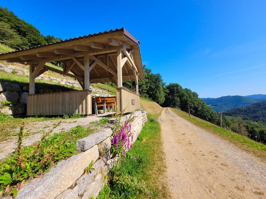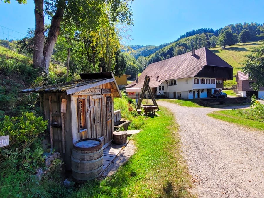Ein wirklich lauschiges und schattiges Plätzchen bietet der Hausacher Bergsteig am Klausmannshof. Nach dem kurzweiligen Plausch mit den Bewohnern machen wir uns wieder auf den Weg. Und auf dem Rundweg in Richtung Hausach wandern wir nun wieder etwas mehr als 200 Höhenmeter bergauf.