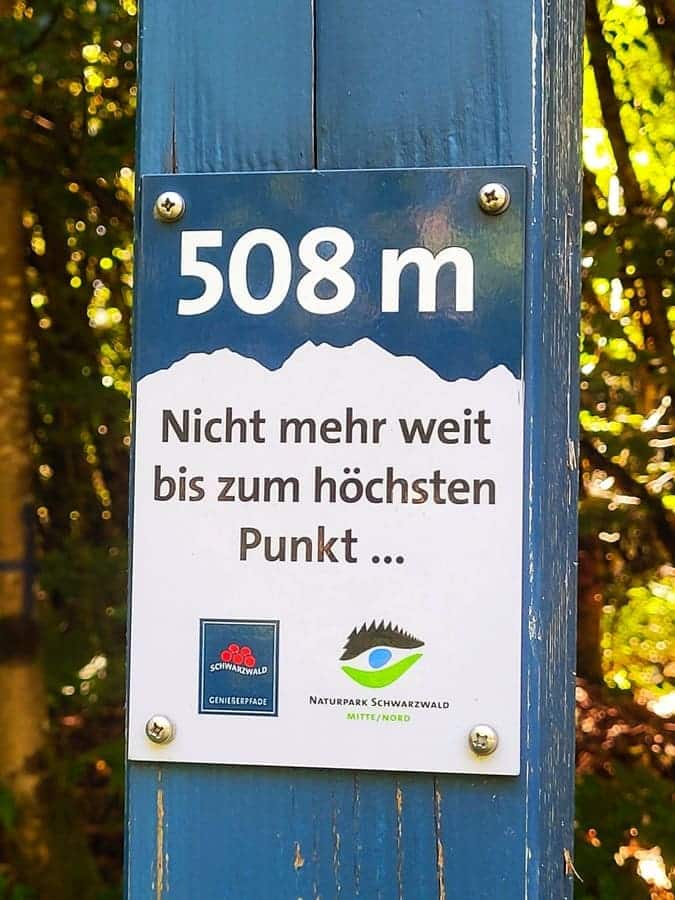 Wir folgen nun auch. Und zwar der bestens, in markantem Rot ausgeschilderten Route dieses Schwarzwälder Genießerpfads. Bergauf geht es durch den Schwarzwald in Richtung Hodelsteinhütte.