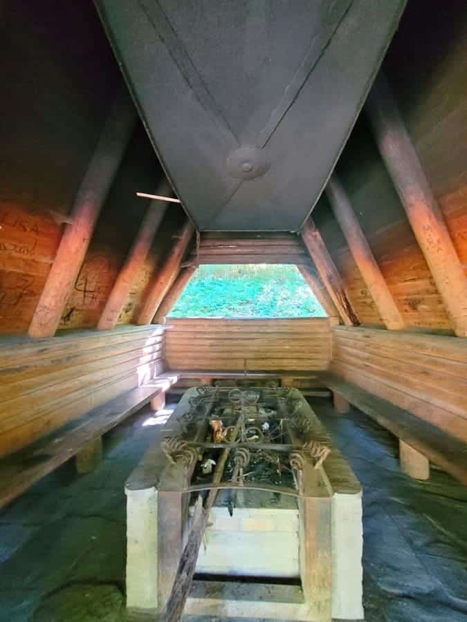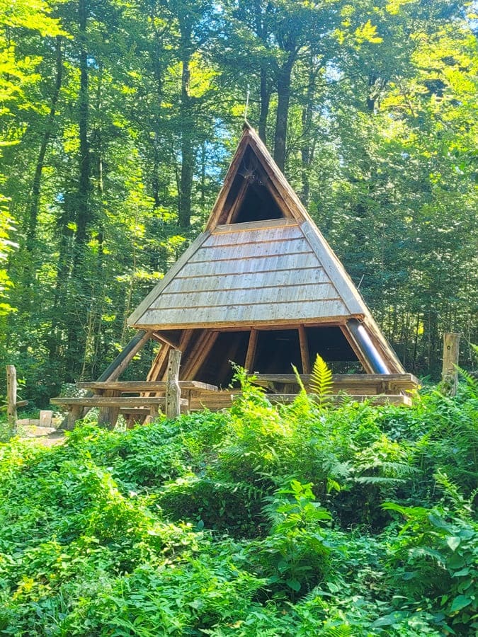 Bei der Hodelsteinhütte handelt es sich um eine recht neue Schutzhütte, die eine erste schöne Aussicht auf das vor uns liegende Tal gibt. Wer jetzt schon durstig geworden ist oder nichts zu trinken im Rucksack hat, der kann sich an den Getränken im ersten Naturkühlschrank auf der Strecke versorgen. Doch keine Sorge: Es werden noch weitere Naturkühlschränke folgen.