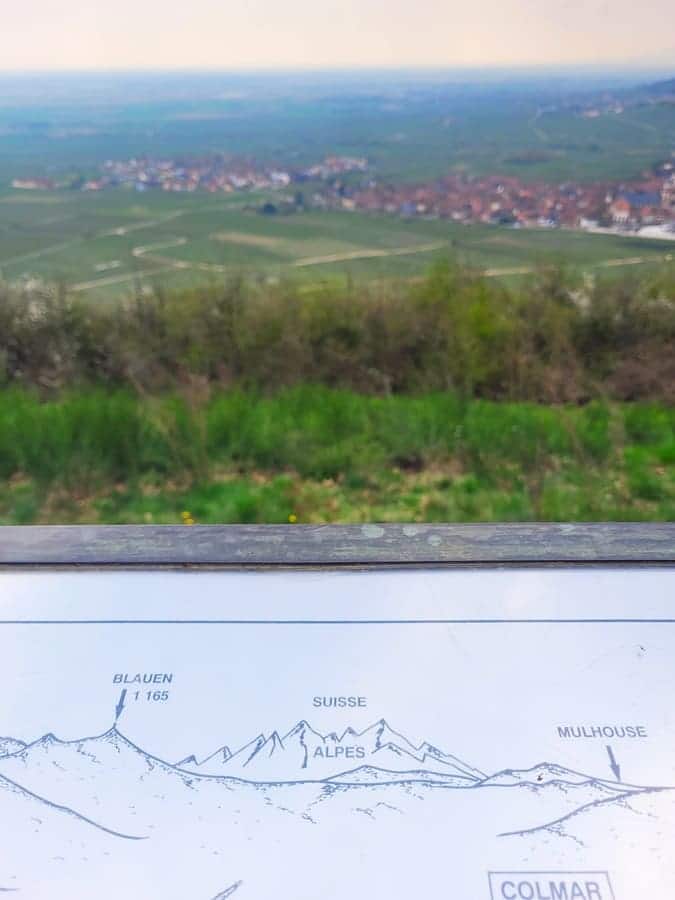 An einem Aussichtspunkt legen wir einen kurzen Stopp ein und genießen die Aussichten. Über eine Infotafel bringen wir in Erfahrung, dass in der Ferne die Schweizer Alpen zu sehen wären. Spielte denn das Wetter mit, was es heute leider nicht so wirklich macht. Schade!