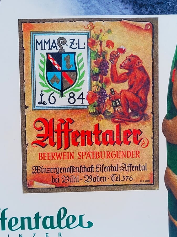 Am Buddeldenkmal sehen wir auf einer Infotafel, dass die Anfänge des Weinbaus in Affental bis zurück ins Jahr 1245 zurück reichen. Bekannt sind die Weine der Affentaler Weine überregional für ihre markanten Flaschen: Die „Buddelflasche“ wurde 1972 entworfen und war eigentlich eine Noterfindung. Denn es wurden den Affentaler Winzern untersagt, damals handelsübliche Bocksbeutel zu verwenden.