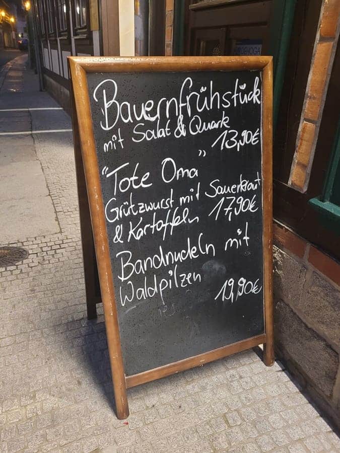Kulinarisch geht es hier recht wild zu: Schneeballen, die ursprünglich eher aus Österreich oder Franken stammten. Im Cafè Wien dürft ihr im Jugendstil-Ambiente Wiener Kaffeehaus-Atmosphäre schnuppern und vielleicht eine Sachertorte verzehren. Und wer regionale Spezialitäten probieren möchte, der kann sich den DDR-Klassiker „Tote Oma“ bestellen. Ein Gericht, meistens bestehend aus Grütz- oder Blutwurst mit Sauerkraut und Salzkartoffeln als Beilage. In der Wernigeroder Altstadt gibt es reichlich Auswahl an unterschiedlichsten Lokalen!