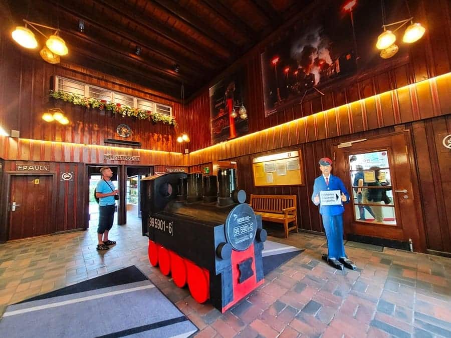 An der Haltestelle Wernigerode-Westerntor darf ein- bzw. ausgestiegen werden. Fast schon nostalgisch geht es im Wartesaal zu. Die Schmalspurbahnen sind ein touristisches Highlight im Harz. Bereits mehrfach durften wir mit einer solchen den Harz erkunden, z.B. beim Wandern auf dem Südharzer Dampflok Steig. Ja und von Wernigerode aus gibt es die tolle Möglichkeit, u.a. über die Haltestellen Schierke und Drei Annen Hohne zum höchsten Punkt des Harzes zu gelangen: auf den Brocken!