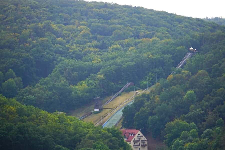 Die „Zwölfmorgentalschanzen“ sind tatsächlich die größten in ganz Sachsen-Anhalt. Wettkampfmäßig größer in Erscheinung getreten sind diese jedoch bisher nicht. Im Zwölfmorgental, so ergibt die Internetrecherche, gibt es sogar einen Skihang mit Skilift. Da sind wir dann doch ein wenig erstaunt. Wer also Wernigerode im Winter einen Besuch abstatten möchte: Skier und Schlitten können bei Schneefall genutzt werden!