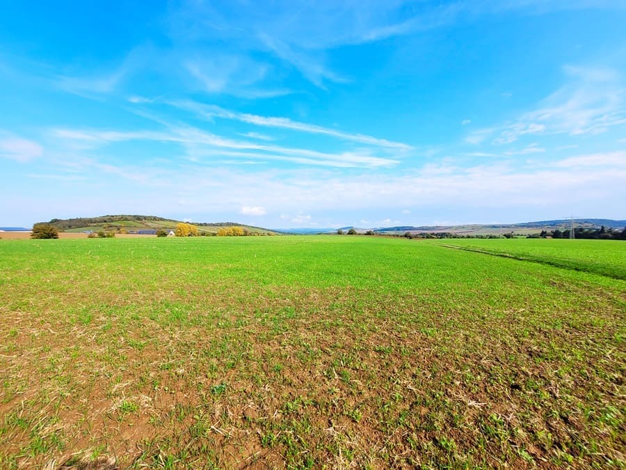 Weitsichten: Davon bekommt ihr auf dem Rundweg in Külsheim zu Genüge. Geht es einmal nicht durch den Wald, dann führt die Route zwischen Wiesen-, Felder- und Ackerflächen entlang. Und spätestens im Herbst, wo die meisten Felder abgeerntet sind, werden schöne Weitsichten freigegeben.